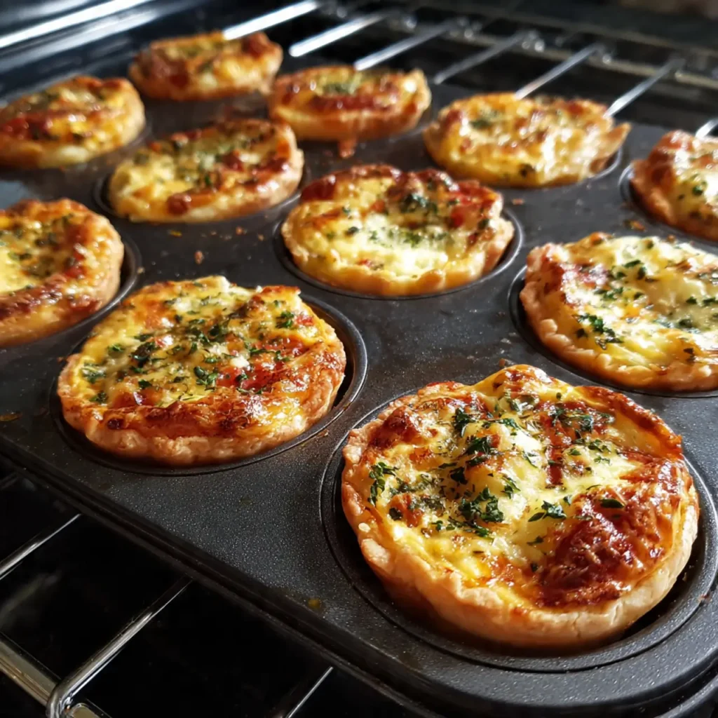 - Skip the pastry completely. Spray the muffin tin very generously. Add fillings directly to the greased cups, pour egg custard over top, filling ¾ full. Bake at 375°F for 20–25 minutes until set and golden on top. Cool 5 minutes before removing — these are more delicate, so give them time to firm up.