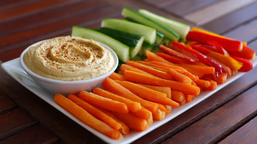 These healthy fats not only contribute to the creamy, satisfying texture of the hummus but also play a role in overall nutrition. They can help with the absorption of fat-soluble vitamins from the vegetables you’re dipping. This synergy makes veggie sticks and hummus a nutritionally complete and smart snack choice.