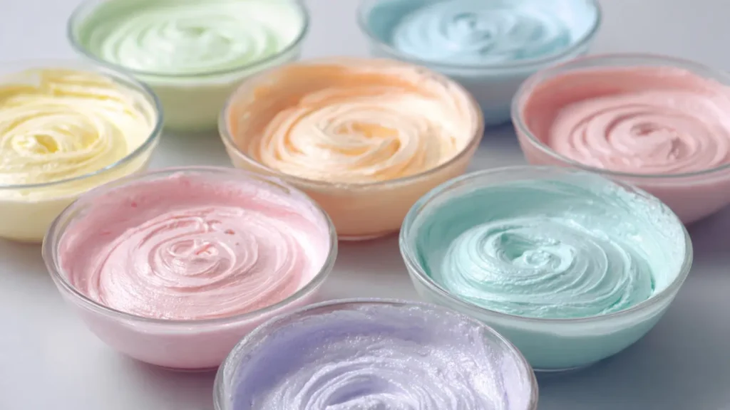 - Divide into small bowls; tint each with a tiny speck of gel food coloring for pastel shades.